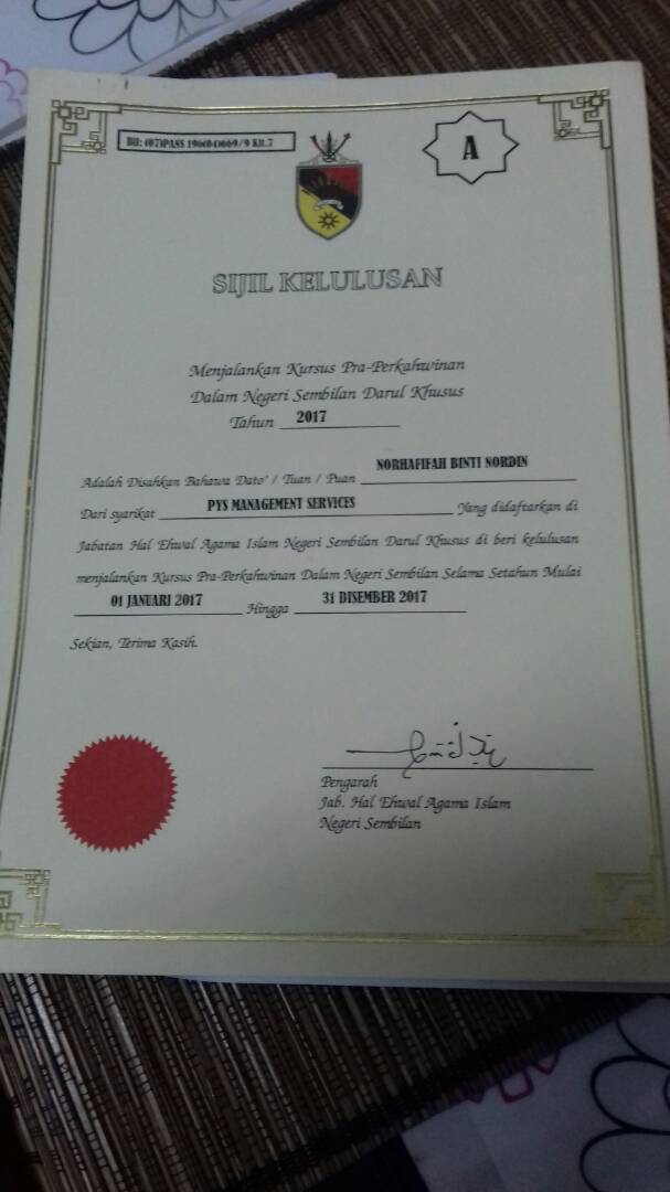 Sijil Kelulusan oleh Jab Hal Ehwal Agama Islam, Negeri Sembilan October 1, 2017 | No Comments Related
